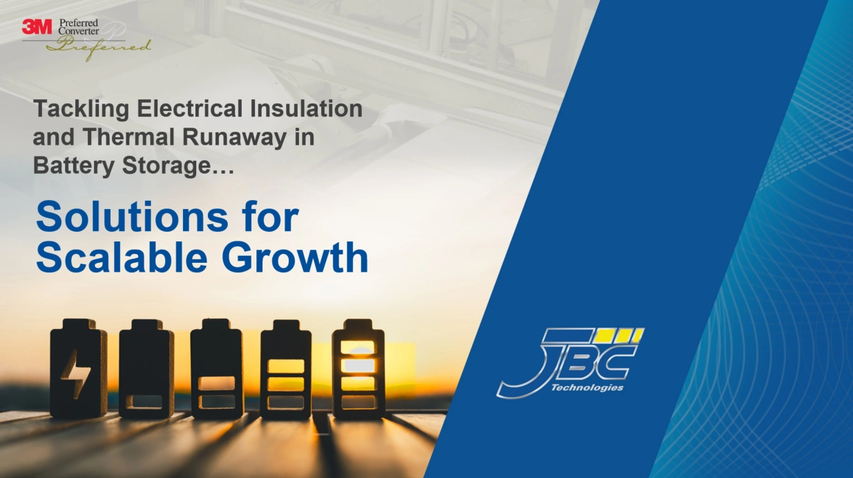 Adhesive tapes and die-cuts enable multi-functional composites that enable next-generation designs within battery packs, electric vehicles, energy storage, and even high-voltage electronic applications. Using high-performance materials and state-of-the-art converting equipment, JBC Technologies can fabricate custom lightweight, multi-layered composites that solve thermal management challenges without adding excess mass.